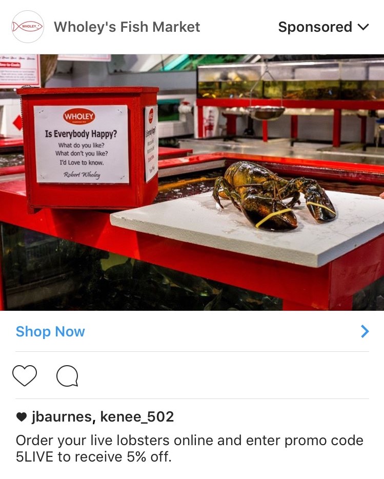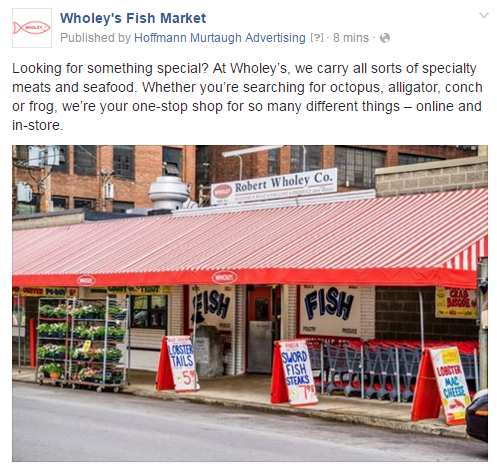 Collaborated with a paid media partner to create a three-month social media pilot to promote awareness of Wholey’s market and online store.